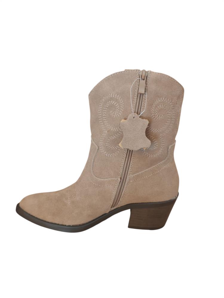 Bota campera en piel serraje con pespuntes a tono pero que lle da ese toque cowboy tan a la última.