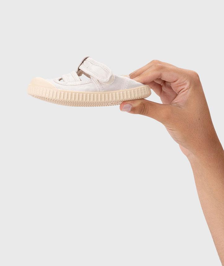 Sandalia cangrejera de lona 100% algodón, de concepto barefoot wide, con la puntera mucho más ancha, cero drop, flexible, blandita y plantilla extraíble. El tinte de nuestras lonas es irregular por su efecto lavado. Lavar en agua fría no sin antes extraer la plantilla.