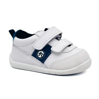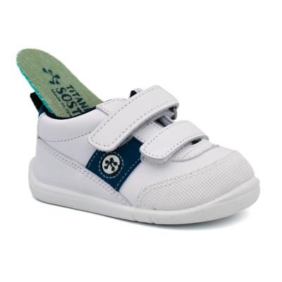 Deportivas respetuosas Titanitos, modelo POU, elaboradas en cuero lavable, con plantilla de textil reciclado, perfumada y antibacteriana. Fabricadas en España.