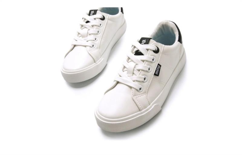 Zapatilla Emi Mustang para niño, inspirada en la tradicional bamba blanca con cordones al tono. Incluye el la trasera de color negro. Nombre de la marca en la lengüeta y latetal de la zapatilla. Se convertirá en uno de sus básicos favoritos para ir al cole.