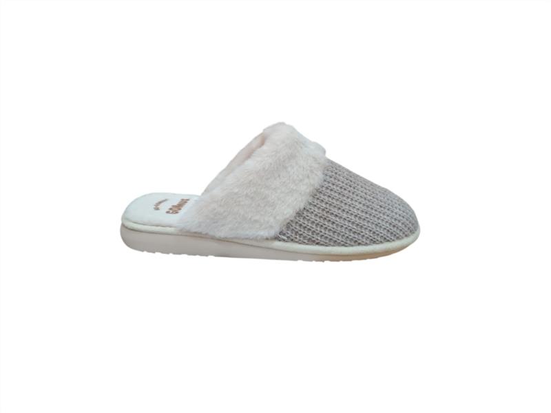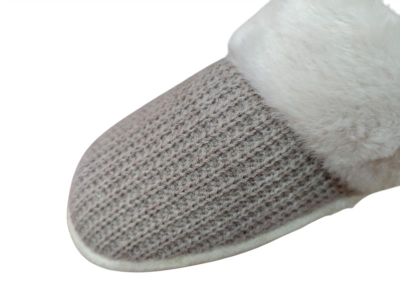 Zapatilla destalonada de casa combinada en punto tostado con pelito blanco muy suave.