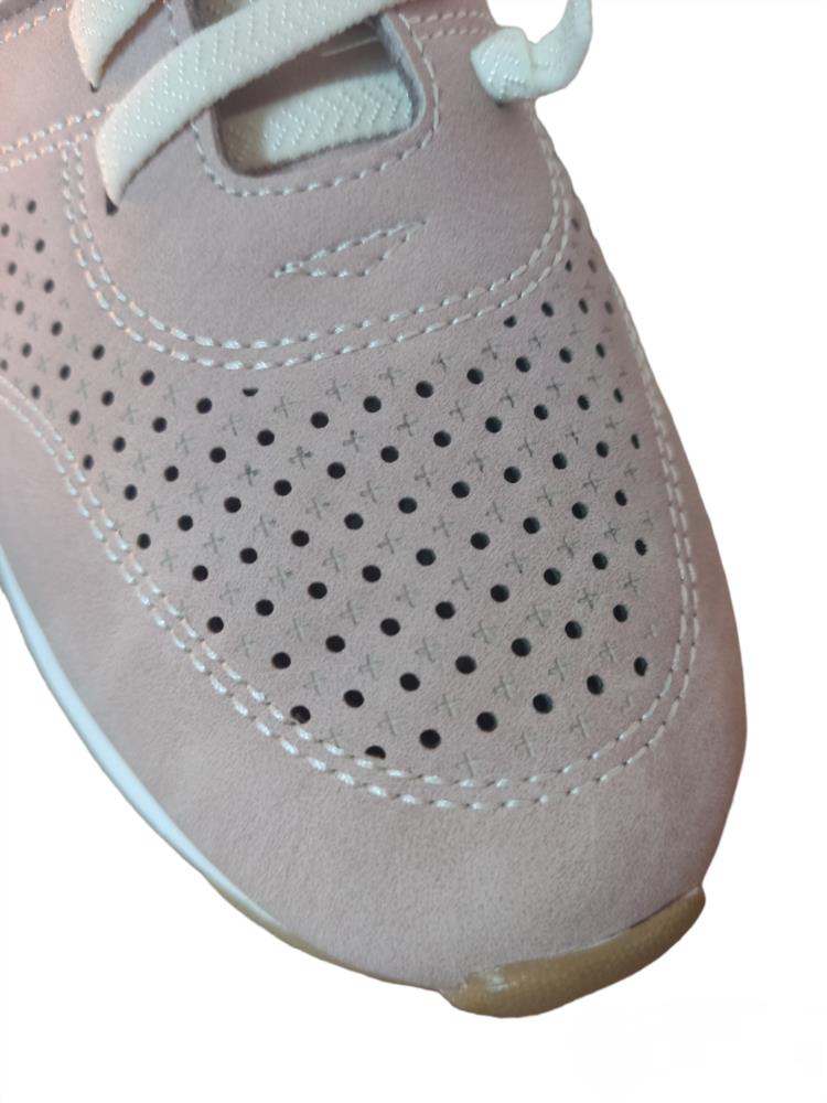 Piel perforada haciendo dibujo que la hace más bonita y más fresca para el calor. Cordón elástico que facilita su puesta sin tener que atar cordones.
